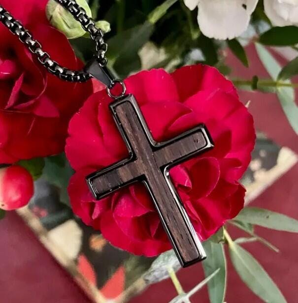 Add a touch of sophistication to your ensemble with our Ebony Wood Cross Necklace for Men. Handmade with care, this black stainless steel Christian pendant features a Real Ebony Wood pendant on a 24-inch chain. It's a symbol of faith and fashion.