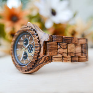 The chronograph wood watch is a sophisticated accessory that you can use as a stopwatch. You can choose from watches of all price ranges, features, and timing capabilities. Shop for a watch that you can read clearly and use to time activities you love, such as running or swimming. The chronograph function is easy to use and a useful addition to your stylish timepiece.