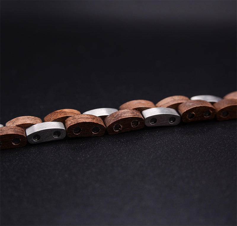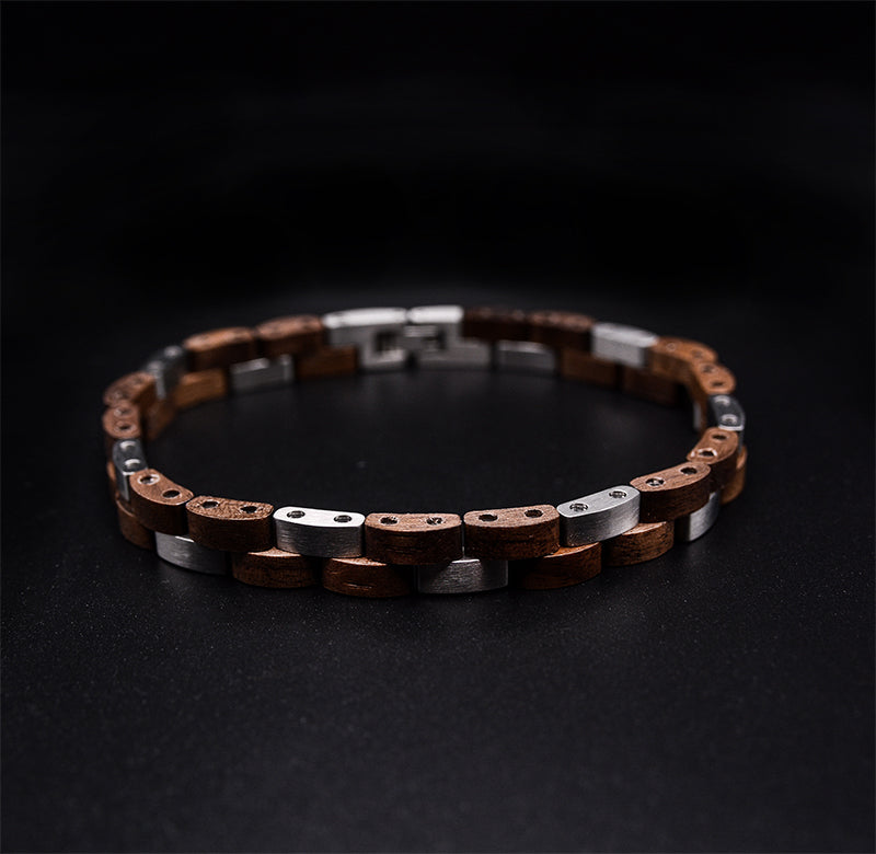 Elevate your style with our sophisticated Men's Wooden Bracelet, a perfect fusion of style and nature. Crafted with a stylish combination of wood and stainless steel, this bracelet is the ideal accessory for the modern man. Its unique design seamlessly blends organic warmth with contemporary elegance, making it a standout choice for those who appreciate both fashion and craftsmanship. Make a statement with this stylish and versatile men's bracelet, crafted to enhance your everyday look with a touch of natural sophistication.