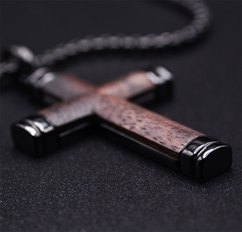 Stylish Symbol of Faith Wooden Dark Cross Necklace For Men
